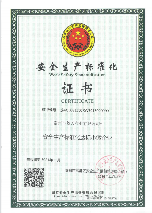 安全生產(chǎn)標準化證書